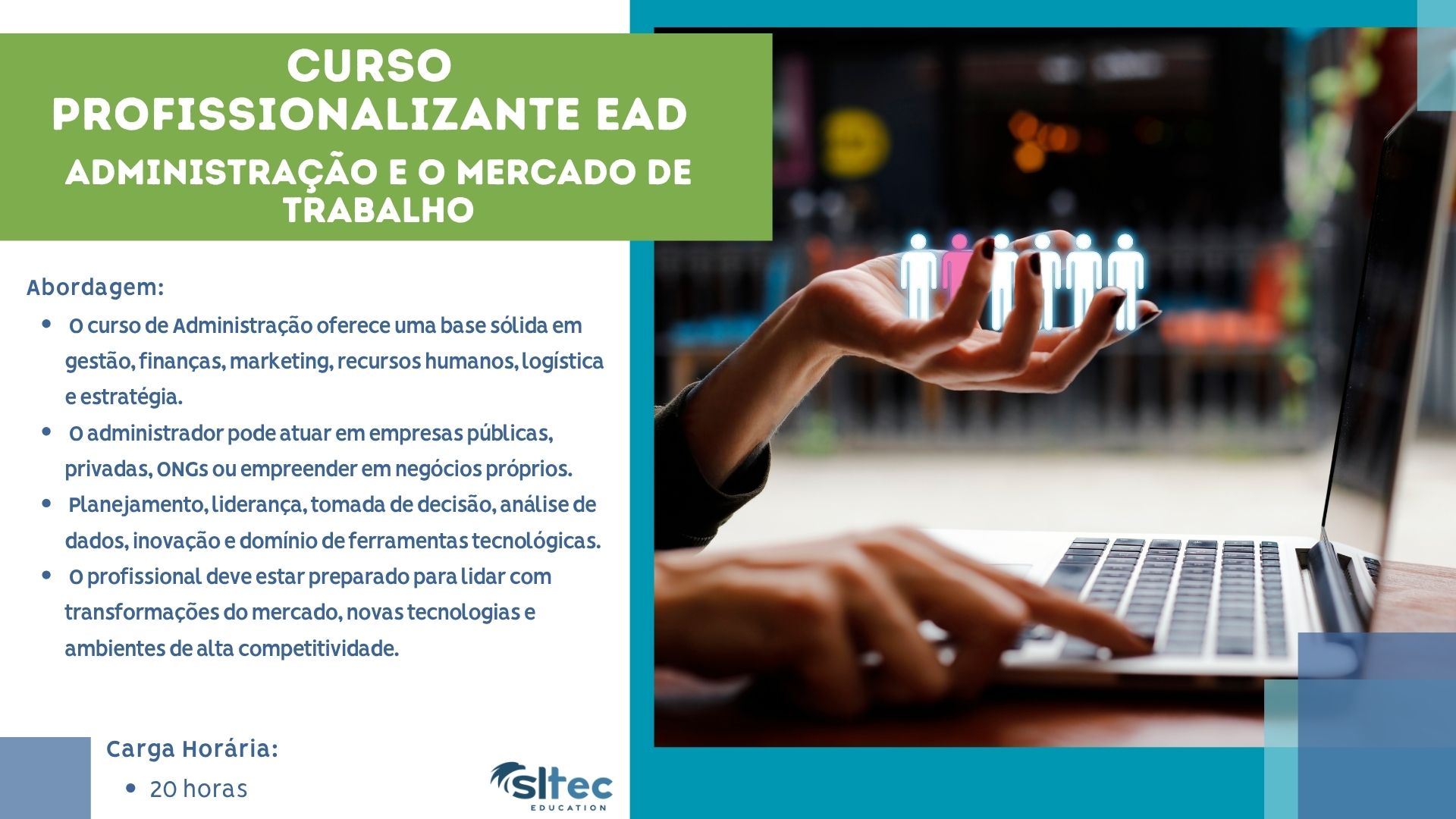 O curso Administração – Mercado de Trabalho foi desenvolvido para preparar o aluno para os principais desafios do ambiente corporativo. Com foco prático, aborda conceitos essenciais de gestão, finanças, marketing, recursos humanos e empreendedorismo, capacitando para uma atuação eficaz em diferentes setores da economia.